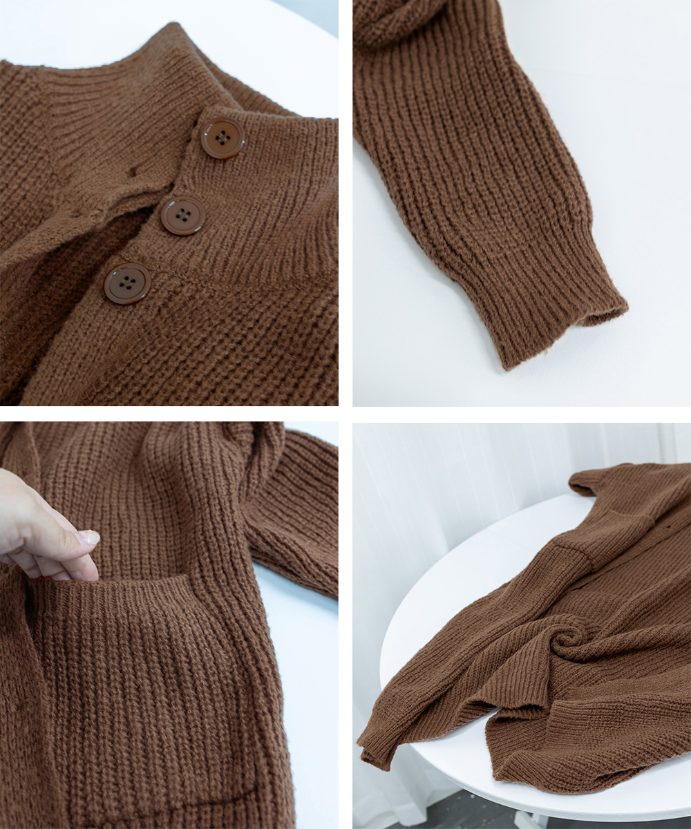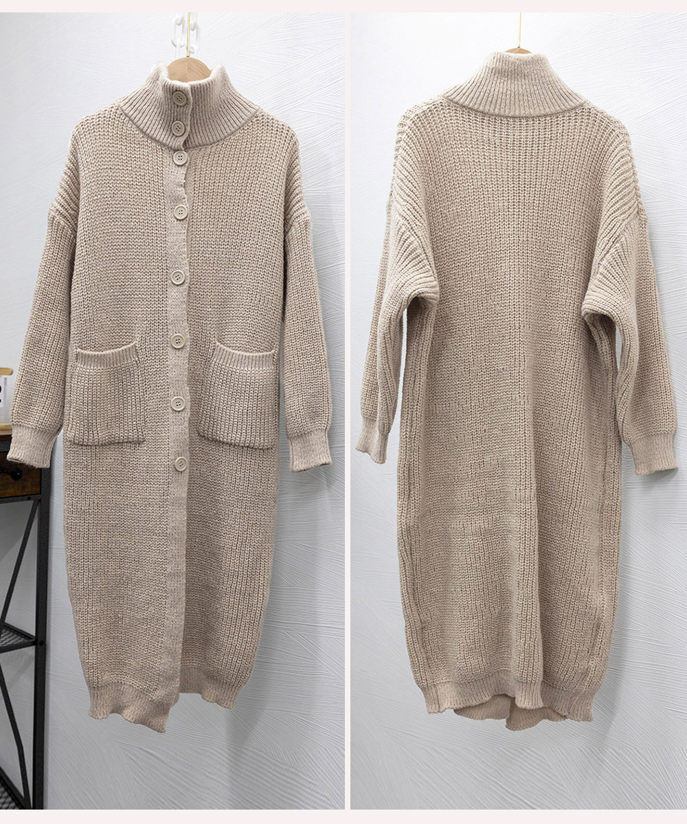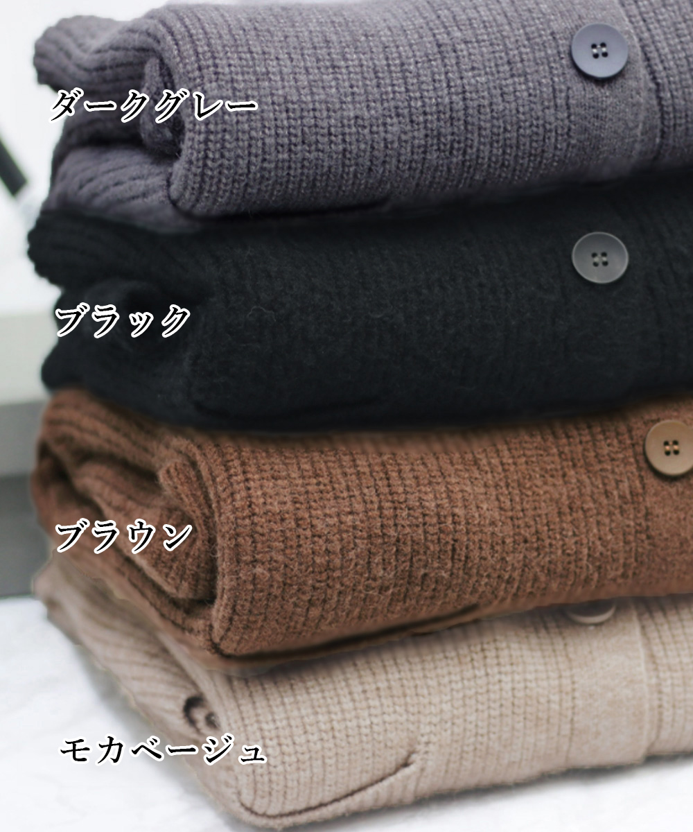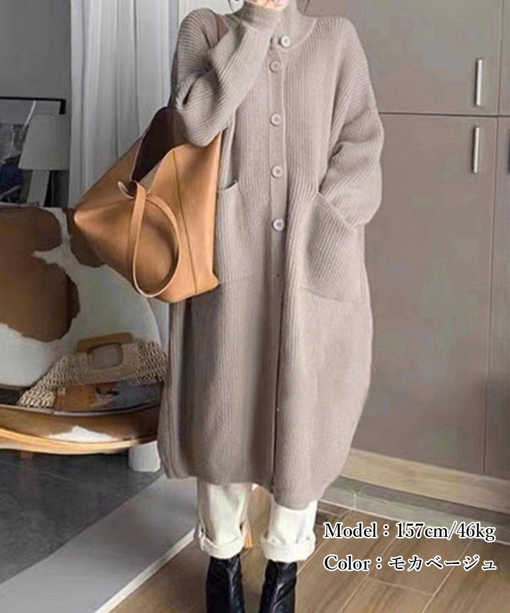 素材:アクリル75%+ポリエステル25% カラー:ブラック/ダークグレー/モカベージュ/ブラウン サイズ:ワンサイズ 着丈:約98cm 肩幅:約53cm 袖丈:約40cm ゆき:約66.5cm 身幅:約52cm 胸囲:約104-140cm 裏地:なし 伸縮性:あり 透け感:なし ※すべて平置きサイズです(採寸方法違いより、多少の誤差がございますので、ご了承ください)。