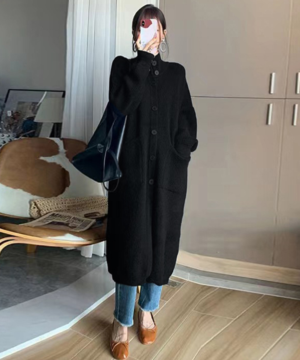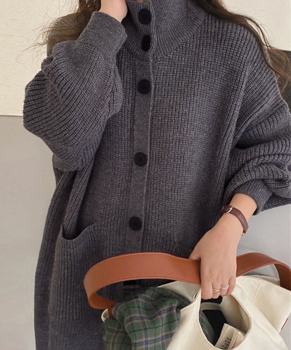 しっかりとした編み目の厚手ニットが秋冬の寒さから守りながら心地よい着心地を提供
