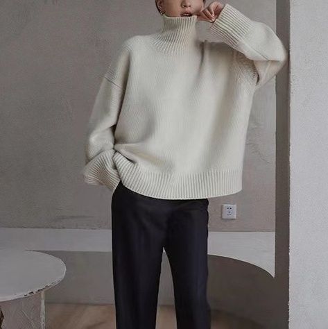 カジュアルにもきれいめにも合わせやすい万能セーターで、秋冬のコーディネートに欠かせない一枚です。
